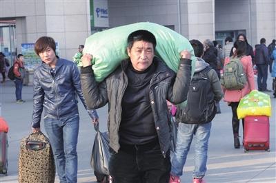2月13日,元宵佳节还没有过,一些回乡过年的农民工已经告别了亲人和故土,拎着大包小裹重新回到了工作的城市里。春节过后,农民工抓住城市节后用工紧缺的机遇纷纷返城寻找工作,他们对新的一年充满期望与憧憬。(本报记者 屈晓飞 摄)