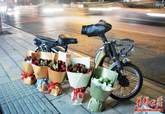2月13日,走在长沙的大街小巷,不少商店将玫瑰花整齐地放在门口,以吸引过往顾客。实习记者 李健 摄