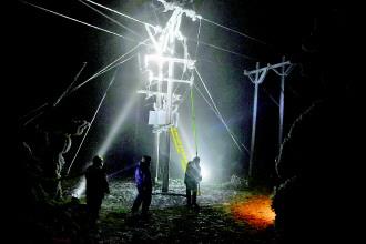 随着雨雪冰冻天气持续加深,截至2月9日,凯里电网输电线路有138条出现覆冰现象,目前,凯里供电局已对达到条件的输电线路开展了融冰,并立即筹备了应急抢险队伍39支1169人应对凝冻灾害。图为抢险队对一条10千伏线路进行融冰。(张琦鲜 本报记者 陈丹 摄)