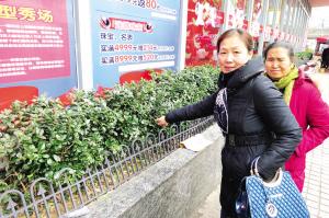 刘女士指着老人晕倒的花坛