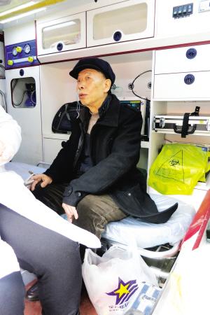 老人在急救车上休息