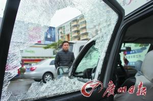 昨日清晨,在南海罗村联星大道旁经营一家手机店的老板邓先生倍感气愤,自己停在商店门前的小车,再次遭人恶意破坏,车上全部六块玻璃被人敲碎。邓先生介绍,车辆在商铺门口前停放了3年之久,一直平安无事。今年农历年初九早上,他发现车辆四个轮胎被刺破,因没时间修车,这几天一直停在那。想不到爱车昨晚再遭黑手,6个车窗玻璃全部被人敲碎。由于人为恶意破坏痕迹明显,邓先生已报警。(记者罗林、龙成通 摄)