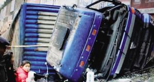 据介绍,这辆遵义籍的货车在撞开一段10米长的护拦后,冲出高速公路,翻到下方15米左右坎下的一条公路上,导致车内一名乘客当场身亡,司机彭某右手骨折。