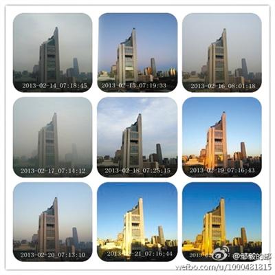到了第64天时,他将所有的照片拼成了一张大图,在朋友圈里引起了很大关注,“一天天的可能不觉得,凑在一起才能发现,好天和坏天的比例究竟如何。”