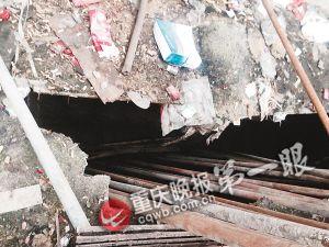 重庆一居民区人行道塌陷 露出10米深窟窿(图)