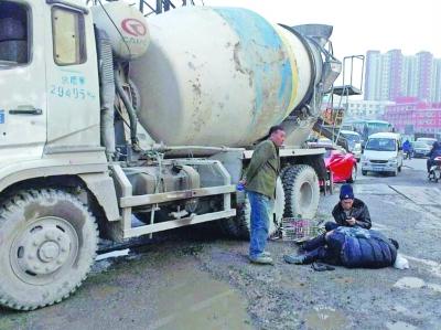 搅拌车转弯带倒电动车致骑车人双腿骨折