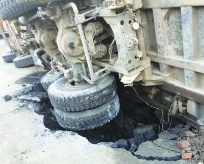 那么,此处路面为何会突然塌陷?记者看见,从塌陷的深坑往下看去,路面下方几乎都是空的,也没有任何管线。有市民称,本来黑渣土车的负载就很大,加之这段路比较老旧,路面承受不了黑渣土车的重量,才会发生塌陷。也有市民猜测,这是和不远处的地铁施工有关系。在现场,一名南京市政工作人员称,已经通报了路面的建设单位,路面承建方和维护方会到现场查看情况,并对此进行维修。交警部门接到报警来到现场,驾驶这辆重型载货车的司机因腿部受伤被送至医院。民警经过调查发现,这辆重型载货车事发时满载渣土,属于营运状态,但是这辆车并不具备营运资质。(记者 季宇轩 报料人 袁先生)