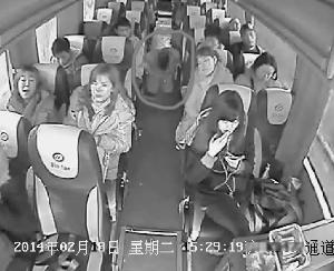 昨天,大巴车车主将当天车内的视频送至派出所,记者从中看到了整个惊险过程。