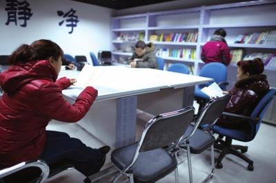 丰体时代社区利用地下人防工程改造的小区图书馆。京华时报记者范继文摄