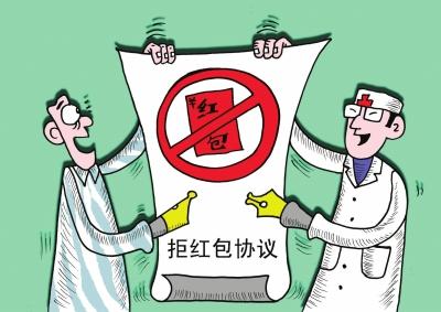 送红包、收红包成医疗领域潜规则,不但有违医德,败坏社会风气,而且不可避免影响医患关系和谐,尽管有关各方一再要求医生拒收红包,也采取了一些积极对策向红包说“不”,但并未能够从根本上得到逆转,甚至出现了医生不收红包患者心里不踏实的尴尬。要革除红包痼疾,不能仅止于泛泛要求,更不能完全寄望于道德自觉,而必须从制度、体制层面进行变革,彻底铲除红包赖以存在的现实土壤,让医生主动对红包敬而远之,不敢受、不愿受、不能受,患者也无需再为送不送红包而纠结,才能取得实质性的效果。(金晶/文刘军/图)