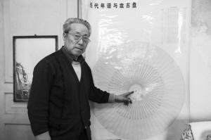 申民风老人介绍他自制的年份盘 记者 王明鑫 摄