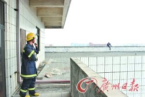 接到报警后,横栏消防中队及辖区派出所近30名警力到场处置。消防指战员与派出所民警来到六楼楼顶,想跟事主进行心理疏导和沟通。但看到救援人员到来,事主立即蹲在围墙上以死相威胁。