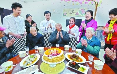 烹饪大师和4名“徒弟”为空巢老人做了一桌香喷喷的生日宴 记者梁超 摄