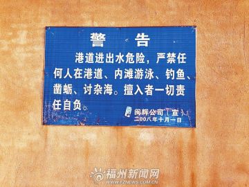 记者在养殖场外看到一则警告:“港道进出水危险,严禁任何人在港道、内滩游泳、捕鱼、凿蛎、讨杂海。擅入者一切责任自负。”