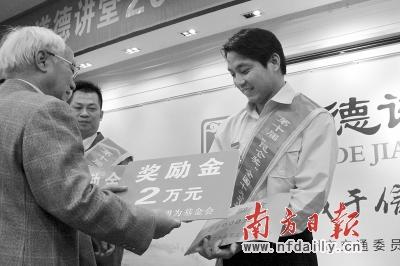 省见义勇为基金会理事长朱明健为见义勇为司机颁奖。 南方日报记者 符超军 摄