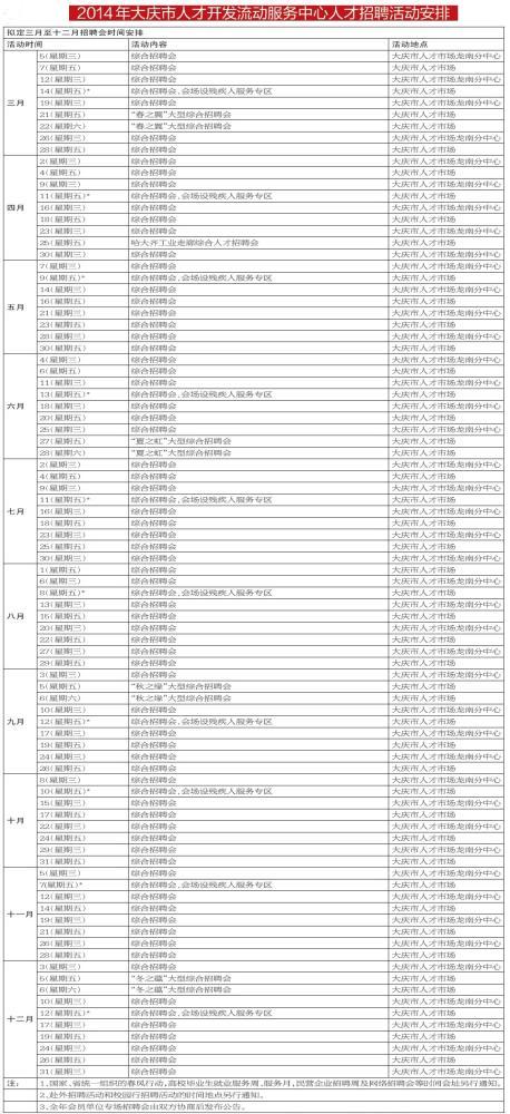 2014年大庆市人才开发流动服务中心人才招聘活动安排