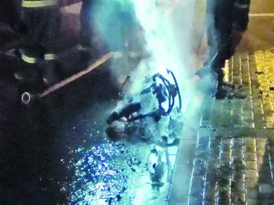 南京街头一电动车自燃 或因车辆受潮电路短路