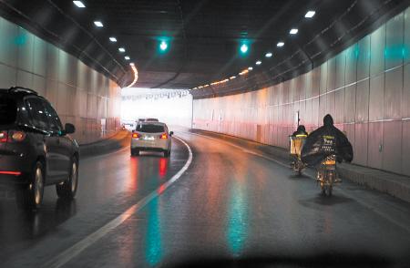 昨日,记者实地走访了几条交通隧道,发现仍有不少市民骑电动车甚至步行穿越。