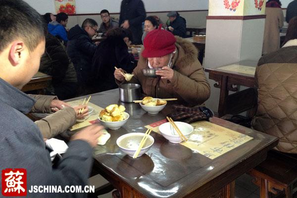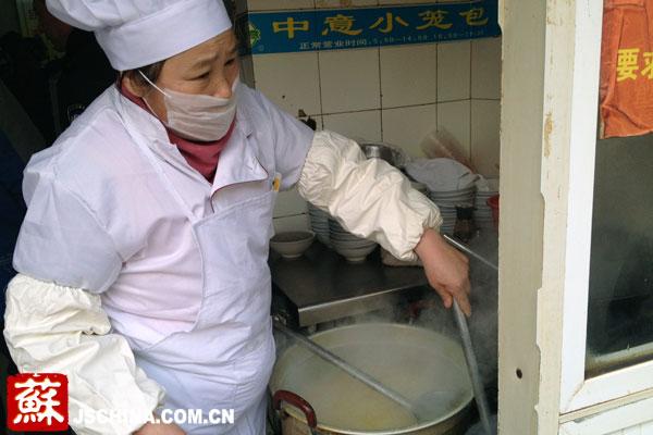 2月18日上午七点半,徐州丰化街上中意小笼包店铺内,市民蒋小姐掏出六元钱买好了一碗辣汤一笼包子。她低头看了看表,从出家门到现在,只用了不到十分钟。同样的,在文亭街上老字号店铺两来凤内,王大娘和女儿已经吃上了该店特色早点:煎包和饣它汤。“女儿上班比较远,出门十分钟能吃上早餐,也不至于会饿着肚子在路上了。”