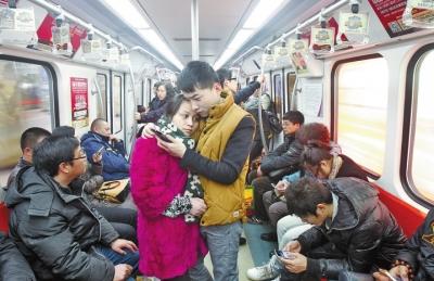 从天安门回来,冯莹依偎在海斌身上,坐在地铁上犹如穿梭时光隧道。