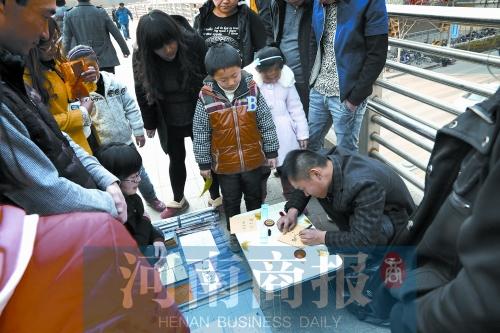 3月7日,《河南商报》用三个版报道了《“面具女孩”父亲的治疗日记》,上百位好心人想给他们捐款。但是曹伦说,不到走投无路,就要自食其力。昨天,曹伦在紫荆山路与商城路交叉口的人行天桥上,摆摊卖起手写的“艺术签名”。