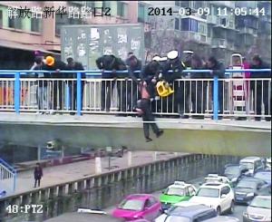男子跳桥轻生 坠桥瞬间路人一把将其拽住(图)