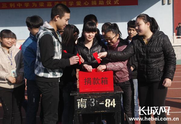 高阳三利中学捐款现场。沈齐摄