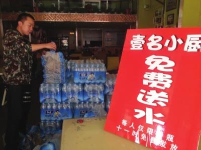 兰州晚报讯(记者苏晓文/图)就在一些商人趁机抬高水价,大发不义之财的时候,12日,大众巷里“壹名小厨”的陈老板开门的第一件事,就是免费向街坊们赠送矿泉水。