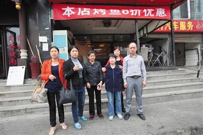 朱冬莲一家人与餐厅老板徐传彬在餐厅前合影。