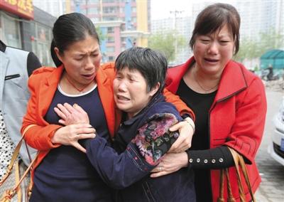 昨日凌晨,朱冬莲在打工的餐馆外,焦急地等待与家人见面。