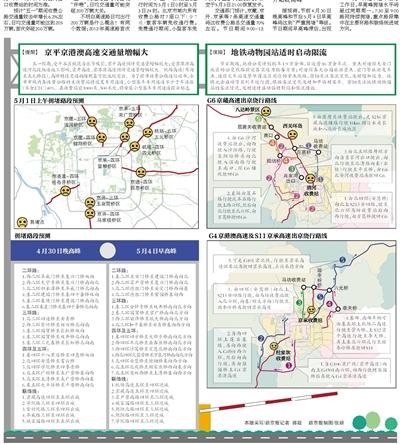 五一假期,受平谷区桃花音乐节吸引,京平高速预计交通量增幅较大;受京港澳高速河北段断道施工影响,京开高速、京港澳高速预计交通量增幅较大。机场高速(苇沟至五元桥段),高峰时段交通拥堵现象可能比较突出。为了提升收费公路通行效率,全市市域内各收费公路的主收费站将设置专用通道,小型客车专用通道不少于车道数(不含ETC)40%。在收费站前1000米、500米处,将安装小型客车专用通道提示标志。