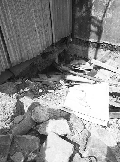 该垃圾收购站院子四面都被围墙挡住,就像一片洼地。垃圾站老板告诉记者,院子里没有排水管道,每次下雨时各种雨水和污水都往院子里流。“雨下得大时,院子里的水有一米多深,要好几天才能慢慢消退。”说起这事,垃圾收购站老板也是一脸的无奈。在院子一角搭有一间简易房,记者注意到,由于长期受冲刷,房子底下的泥土已经被掏空一大块。“以前我们就住在这间房子里,但是现在哪里还敢住啊!”垃圾收购站老板说。而在院子的另一角,仍有生活污水在不断地往院子里排放。