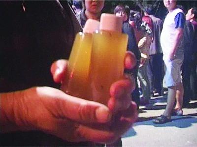 前晚8点,几名民间艺人打着“河南某文艺表演团”的旗号,在六合区东门转盘十字路口信号灯下摆开场子,一人向围观的市民表演砖头砸手腕,不少围观者捂住眼睛不敢看。随后,表演者便从车厢里搬出两桶装有动物的铁桶,里面有老龟和蟒蛇。一位汉子大声吆喝,并从里面取出许多装有液体的瓶子,声称这些都是浸泡过老龟、蟒蛇等动物的“精髓液体”包治百病。