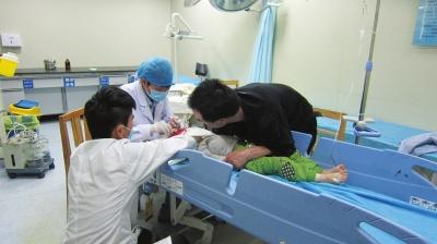 “哎呦,哎呦……”5月11日晚上8时许,兰大二院急诊科一名正在接受清创缝针的两岁女孩痛苦的喊着,而她爸爸程先生则在一边不断地安慰——“娜娜不哭,爸爸在,爸爸在……”程先生告诉记者,孩子是被楼下的邻居打的。事发时,他并不在家,不清楚发生了什么事情。缝合一直到晚上9点多才结束,目测孩子的缝合伤口,得有6—8公分长。
