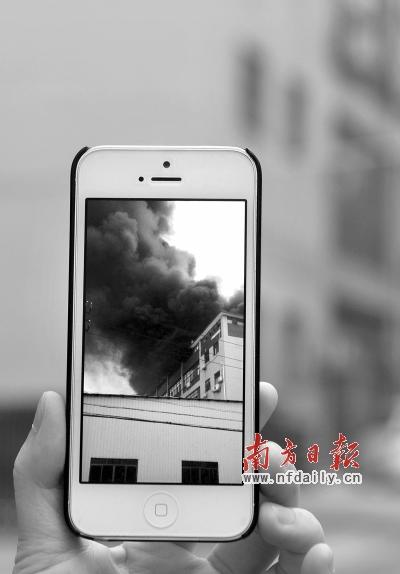 起火工厂冒着浓浓黑烟。记者 肖雄 摄