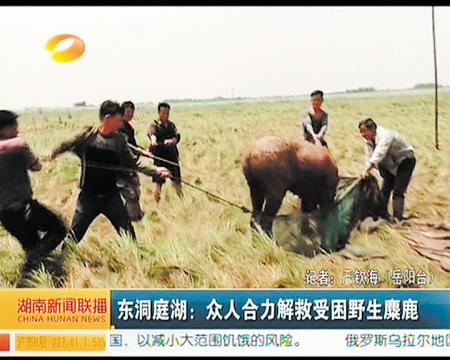 众人解救被困麋鹿 。据湖南卫视荧屏截图