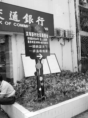 5月12日,记者在龙昆北路交通银行营业网点旁的路口看到,这里竖着一个绿色指示牌,牌上写着“滨海新村社区居委会 滨海新村504号(老人之家旁)”以及居委会的办公电话,一个白色的箭头指向居委会的位置。指示牌上还写着”一样的蓝天下 一样温暖的家”,让人耳目一新。记者注意到,该路段没有路名,沿着箭头方向走100多米就能找到滨海新村社区居委会。滨海新村社区居委会主任刘蓉称,在滨海小学路口附近也有一个居委会指示牌,方便群众找到居委会办事。指示牌是今年3月由滨海街道办统一安装的。