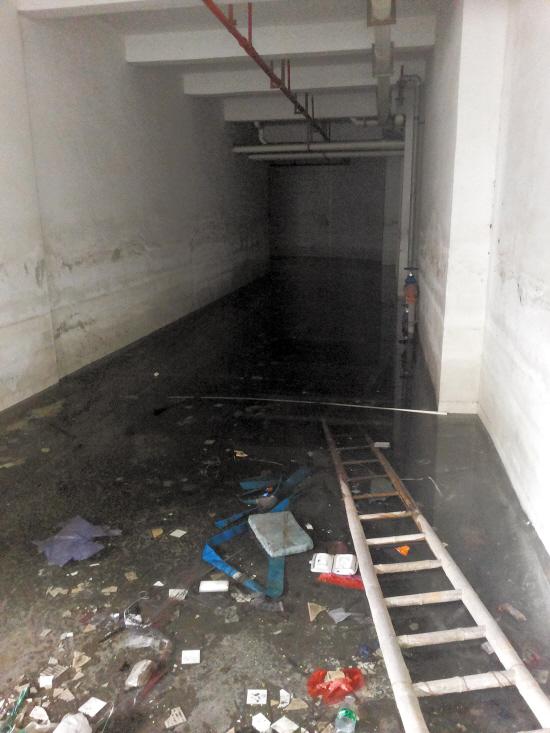 “这还是好的,最深的时候积水有两米高”。村民郭先生告诉记者,2013年为防止登革热肆虐,村小组在相关政府部门的指示下买了抽水机,并请专业人员来排水,用了整整一周才排干净。但只要下大雨,公寓的停车场就会变成地下水库,不仅臭气冲天,还滋生了很多蚊虫。