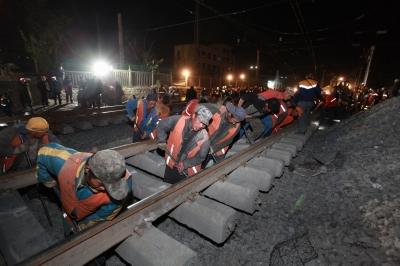 凌晨1时36分,整个施工铁路路段开始停电、封路,沿线的6趟列车也为当晚的大施工暂停运行半小时至3小时,以配合此次兰新铁路路轨大拨移作业。