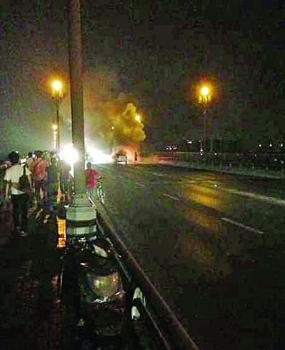 南京长江大桥上一轿车自燃 交通阻断20分钟(图)