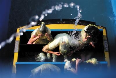 昨日,欢乐谷,游客在玩水上项目。当天北京迎来今年入夏最高温。新京报记者 薛珺 摄
