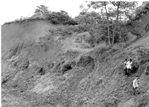 这个挖掘场位于永康江南街道石溪村村口,这里有一片开阔地,有一个黄泥坡。黄泥坡上有10多个大小不一的坑洞。这些坑洞,大的直径四五米,小的直径两三米,坑洞内有明显的挖凿痕迹。
