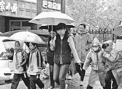 22日傍晚,公园北街的社会秩序恢复正常。图为家长们接放学的小朋友回家。本报记者 胡仁巴摄
