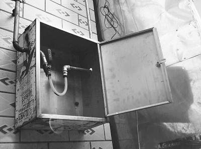 昨天下午,市天然气公司汉口抄收中心稽查组来到硚口区长丰村9队,对居民家的燃气表箱进行检查。在一处狭窄的巷道,稽查人员打开一楼悬挂在外墙上的天然气表箱,发现该用户箱内的燃气表不见踪影,取而代之的是一根“U”形红色塑料软管,直接连通进气管道阀门。