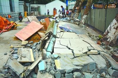 围墙倒塌埋住一人 早点摊主和民工合力抬砖施救