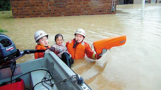 广州消防人员营救被困群众 杨锐荣 摄