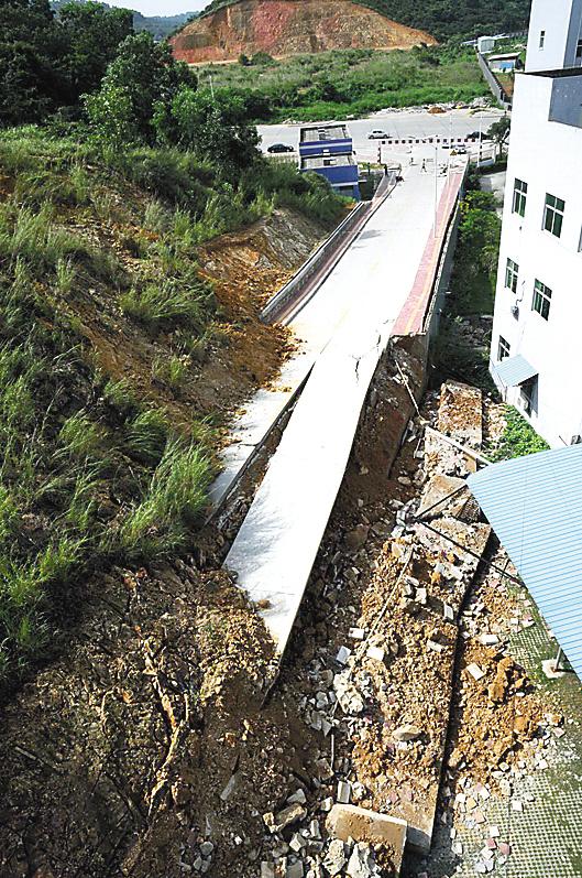 东莞山体滑坡差点砸到宿舍 羊城晚报记者 秦小辉 摄
