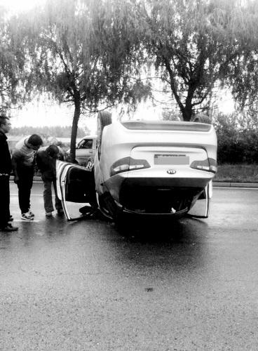 8日夜晚的小雨,令路面格外湿滑。9日凌晨3时40分左右,一辆小轿车途经辽中四方台附近时,突然迎面驶来一辆车——那辆车开着远光灯,光亮十分刺眼。这个时间段,原本是机动车驾驶员最疲劳的时候,小轿车司机、30多岁的男子被这道刺眼的亮光所惊吓,他猛地往右打了一把方向盘。结果,这一下用力过猛,方向盘打大了,车子猛地向右冲出了马路,将路旁的树撞倒。司机随后往左侧试图矫正方向盘,可是,这一把方向盘用力更大,车子以巨大惯性向左侧翻,直至四脚朝天地停到马路中央……