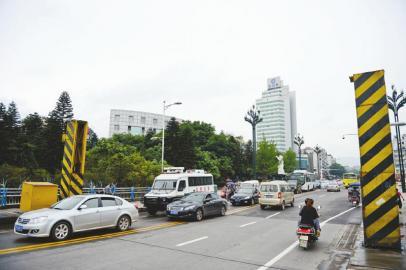 为缓解南门桥的交通压力,2012年3月31日,南门桥两端安置限高装置,每日早上6点到晚11点半,限高3.8米,其余时段限高两米。周福森告诉记者,去年5月,他们接管南门桥维护,到目前为止,限高架被撞了5次。最近一次比较严重的维修花费3万元。“出于对南门桥的保护实施的限高政策,保护了南门桥,但是限高架却多次受损。”周福森说。