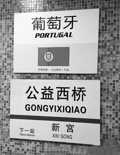 记者在微博上搜索发现,已经有网友拍摄了照片。照片中可以看到,在“海淀黄庄”的站名旁边,贴着“德国GERMANY”的名称和国旗。下面还有一行小字,写着“京港地铁,与足球同一节拍”。此外,魏公村站贴出的喀麦隆、公益西桥站贴出的葡萄牙、角门西站贴出的意大利等,也纷纷被网友拍照发到了网上。还有细心的网友指出,4号线、大兴线的全部35个站点中,一共有8个站点带有“西”字,比如公益西桥、角门西等。这么说来,整条线路都应该被叫作“巴西”(八西)。不少网友还饶有兴致地做起了接力竞猜:日本(菜市口)、韩国(动物园)……